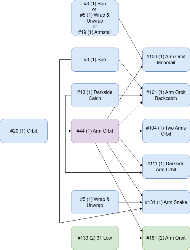 - #101 (1) Arm orbit backcatch (you will also need to know the sun)