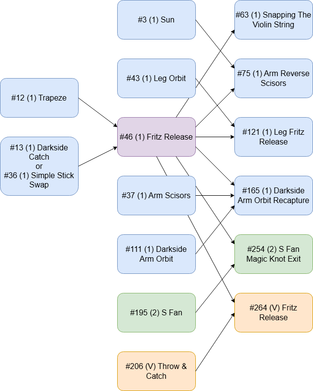 This trick is part of the Diabolo Trick Roadmap (also available on Amazon) which is a skill tree (containing 337 tricks from 1 to 3 diabolos) designed to give you a personalized list of tricks you’re ready to learn, taking into account the tricks you already know.