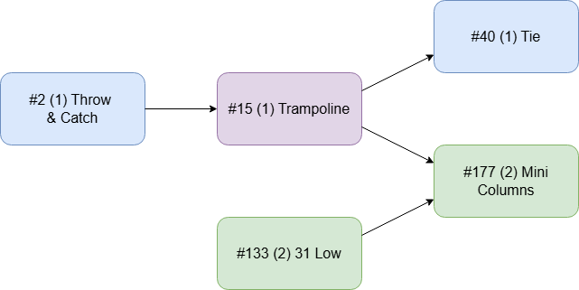 This trick is part of the Diabolo Trick Roadmap (also available on Amazon) which is a skill tree (containing 337 tricks from 1 to 3 diabolos) designed to give you a personalized list of tricks you’re ready to learn, taking into account the tricks you already know.