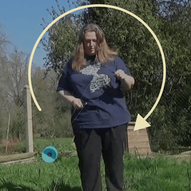4. Make sure your right stick is aligned with the string and throw it counterclockwise in front of the left stick (as if you’re doing an external slowcide).